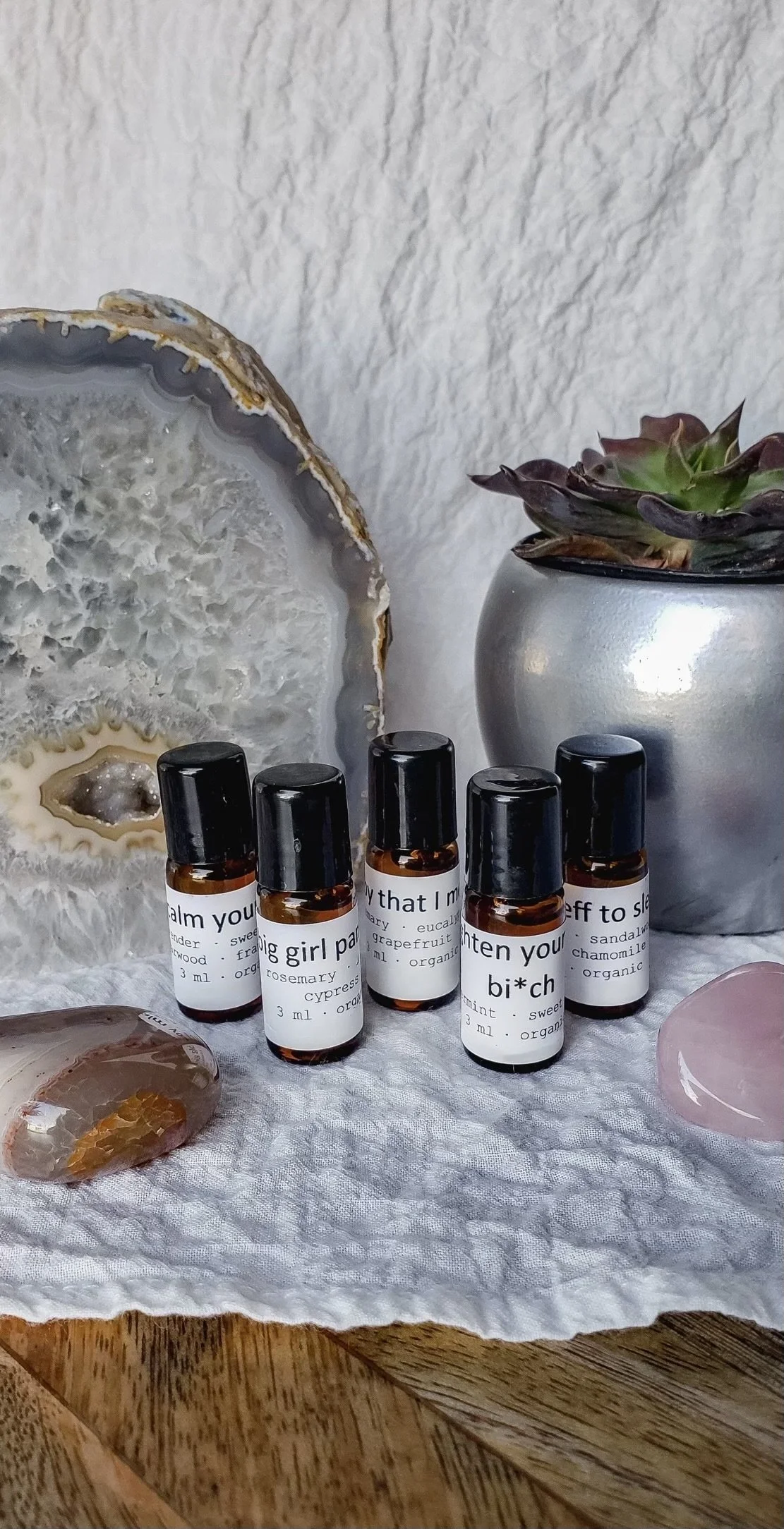 Categories: Select a Category essential oil blends sprays aromasticks crystals Store essential oil blends sprays aromasticks crystals Quick View bad a$$ bi*ch essential oil blend bundle (only available for a limited time) $49.00 Add To Cart Added! Quick View calm mama essential oil blend $22.00 Add To Cart Added! Quick View mother earth essential oil blend $22.00 Add To Cart Added! Quick View mountain man essential oil blend $22.00 Add To Cart Added! Quick View om essential oil blend $22.00 Add To Cart Added! Quick View she essential oil blend $22.00 Add To Cart Added! Quick View stress relief essential oil blend $22.00 Add To Cart Added! Quick View the dude essential oil blend $22.00 Add To Cart Added! Quick View try easy essential oil blend $22.00 Add To Cart Added! Quick View cleanse + protect spray $17.00 Add To Cart Added! Quick View clear the energy spray $17.00 Add To Cart Added! Quick View man cave room spray $17.00 Add To Cart Added! Quick View sweet dreams pillow spray $17.00 Add To Cart Added! Quick View yoga mat spray $17.00 Add To Cart Added! Quick View be brave aromastick $11.00 Add To Cart Added! Quick View let go aromastick $11.00 Add To Cart Added! Quick View open mind aromastick $11.00 Add To Cart Added! Quick View tension tamer aromastick $11.00 Add To Cart Added! Quick View uplift aromastick $11.00 Add To Cart Added! Quick View amazonite from $10.00 Select Size standard size palm size Add To Cart Added! Quick View amethyst from $5.00 Select Size standard size palm size Add To Cart Added! Quick View aquamarine $5.00 Add To Cart Added! Quick View blue apatite from $5.00 Select Size standard size palm size Add To Cart Added! Quick View carnelian $5.00 Add To Cart Added! Quick View fluorite points $18.00 Add To Cart Added! Quick View Garnierite $20.00 Add To Cart Added! Quick View jade $6.00 Add To Cart Added! Quick View labradorite from $8.00 Select Size standard size palm size Add To Cart Added! Quick View lapis lazuli $5.00 Add To Cart Added! Quick View lepidolite $5.00 Add To Cart Added! Quick View malachite $5.00 Add To Cart Added! Quick View moonstone $5.00 Add To Cart Added! Quick View mystic merlinite from $6.00 Select Size standard size palm size Add To Cart Added! Quick View noble serpentine $6.00 Add To Cart Added! Quick View onyx $5.00 Add To Cart Added! Quick View rose quartz $5.00 Add To Cart Added! Quick View selenite wand (small) $6.00 Add To Cart Added!